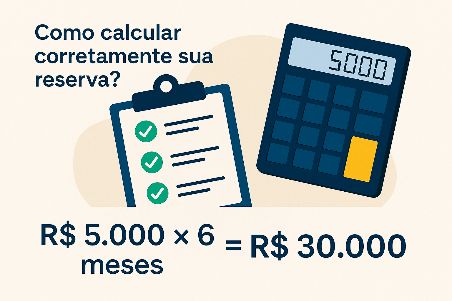 Exemplo: se suas despesas são de R$ 5.000 por mês, uma reserva de 6 meses deve ser de R$ 30.000.